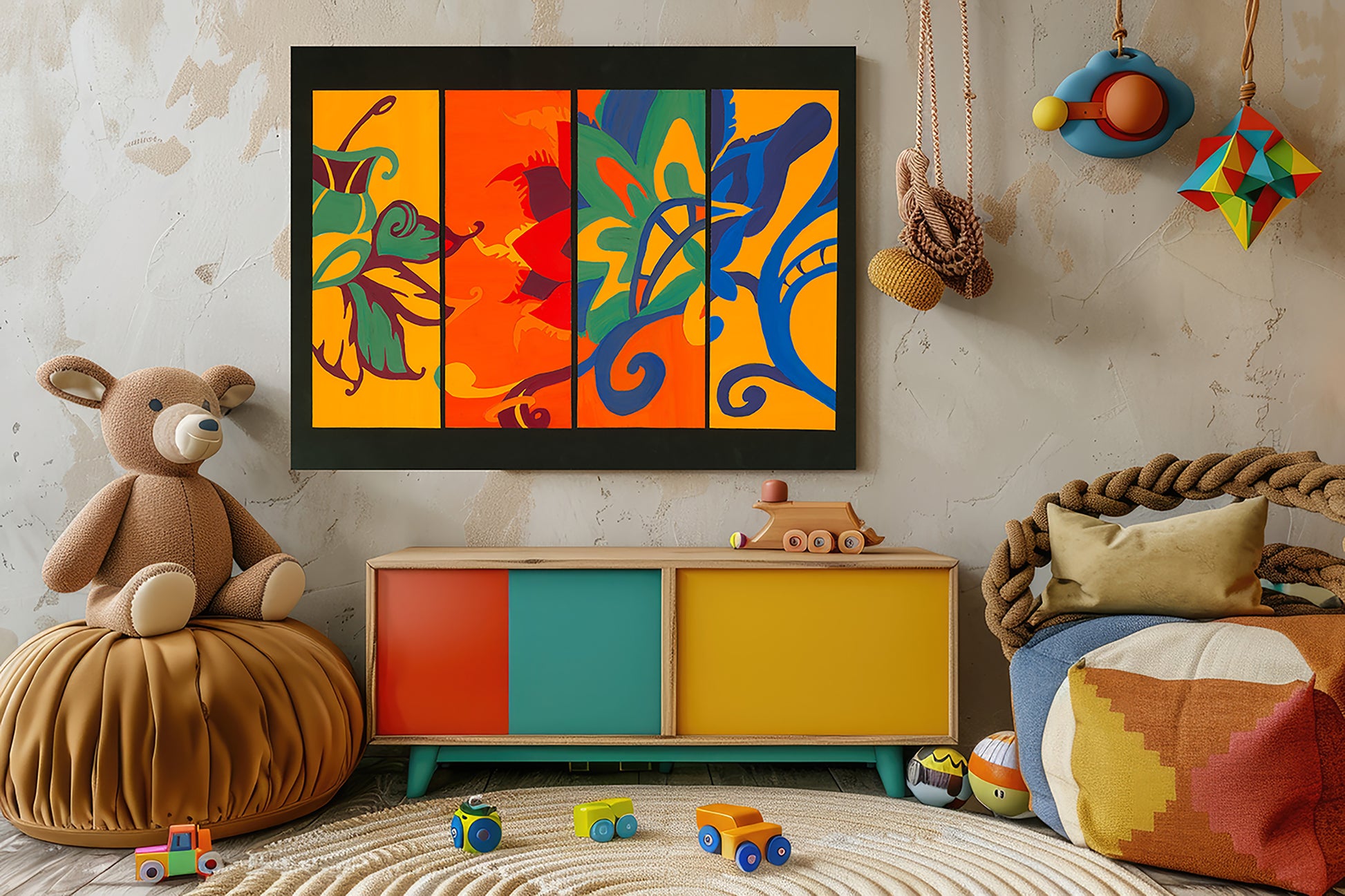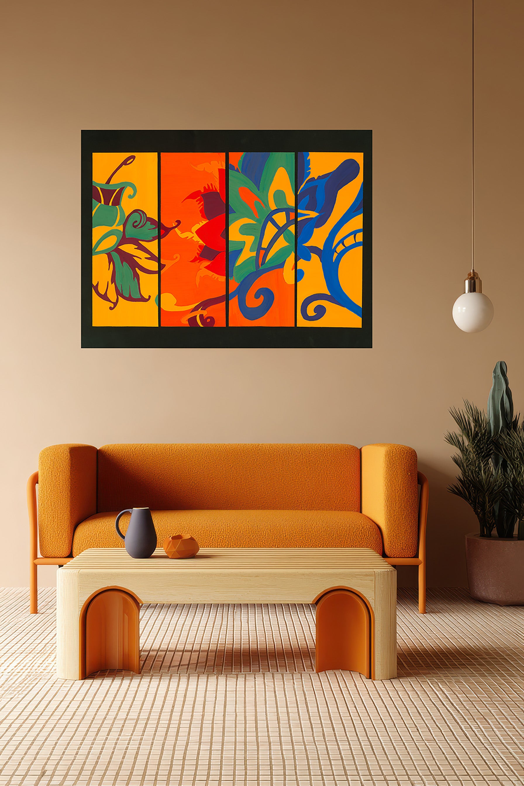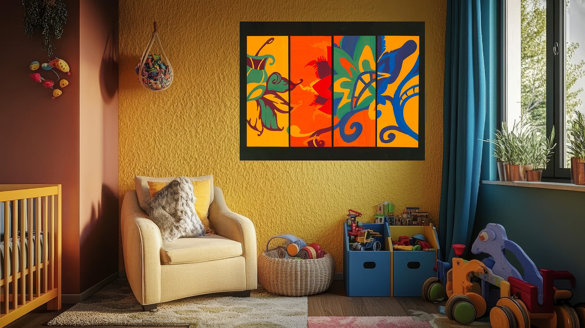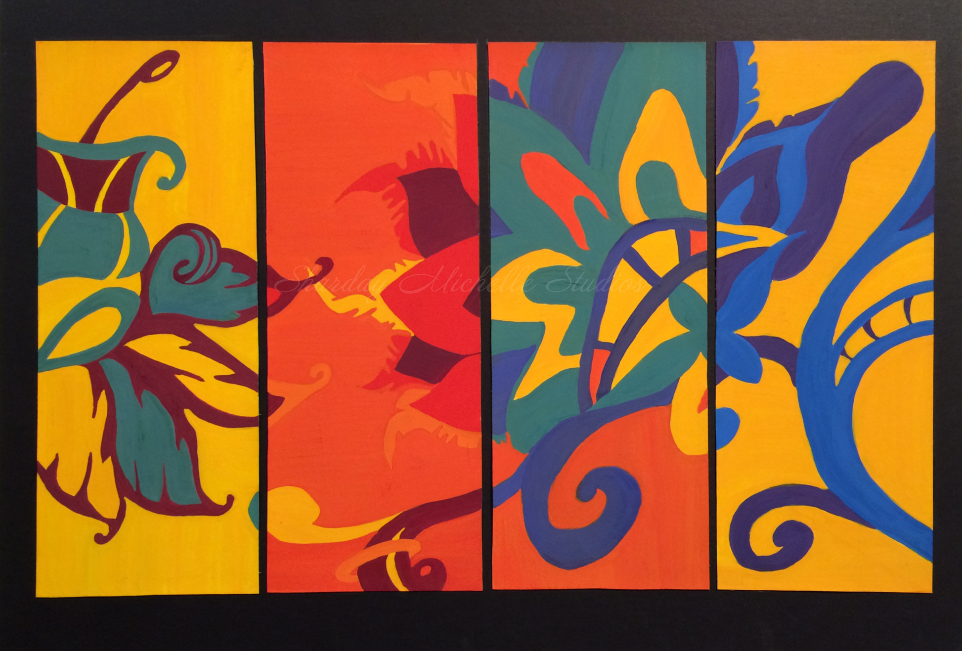A study of lace focusing on how color interacts side-by-side. Each panel is separated by a color scheme.
